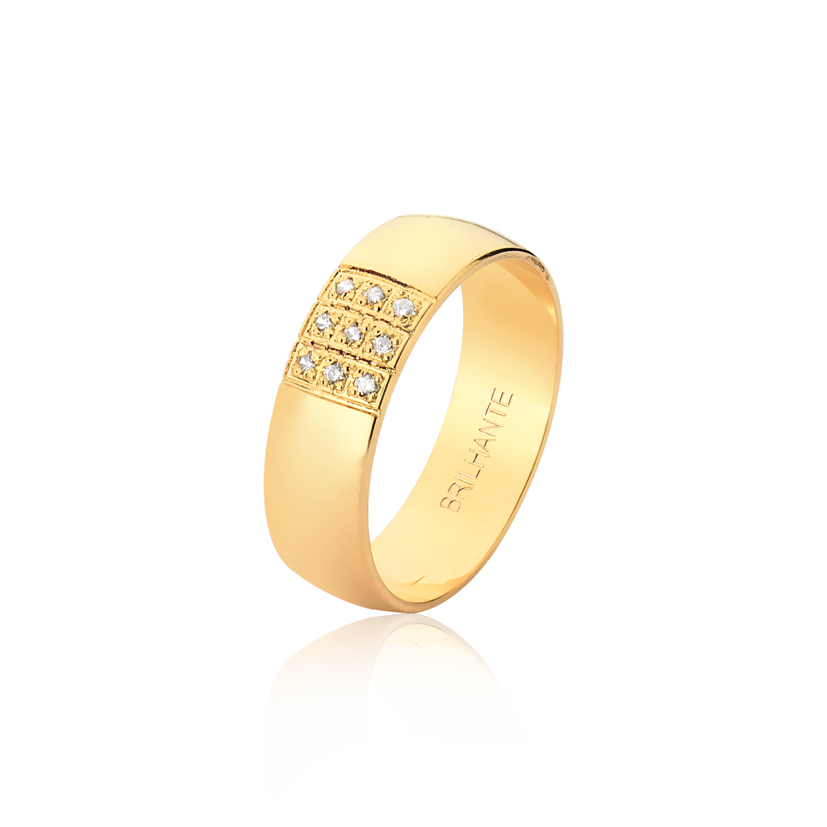 Feita com Ouro de alta pureza, a Aliança brilha intensamente, refletindo a luz de maneira encantadora. Seu acabamento polido garante um brilho duradouro, tornando-a uma peça de destaque em qualquer situação.