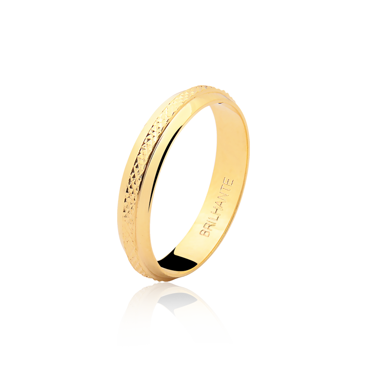 Feita com Ouro de alta pureza, a Aliança brilha intensamente, refletindo a luz de maneira encantadora. Seu acabamento polido garante um brilho duradouro, tornando-a uma peça de destaque em qualquer situação.