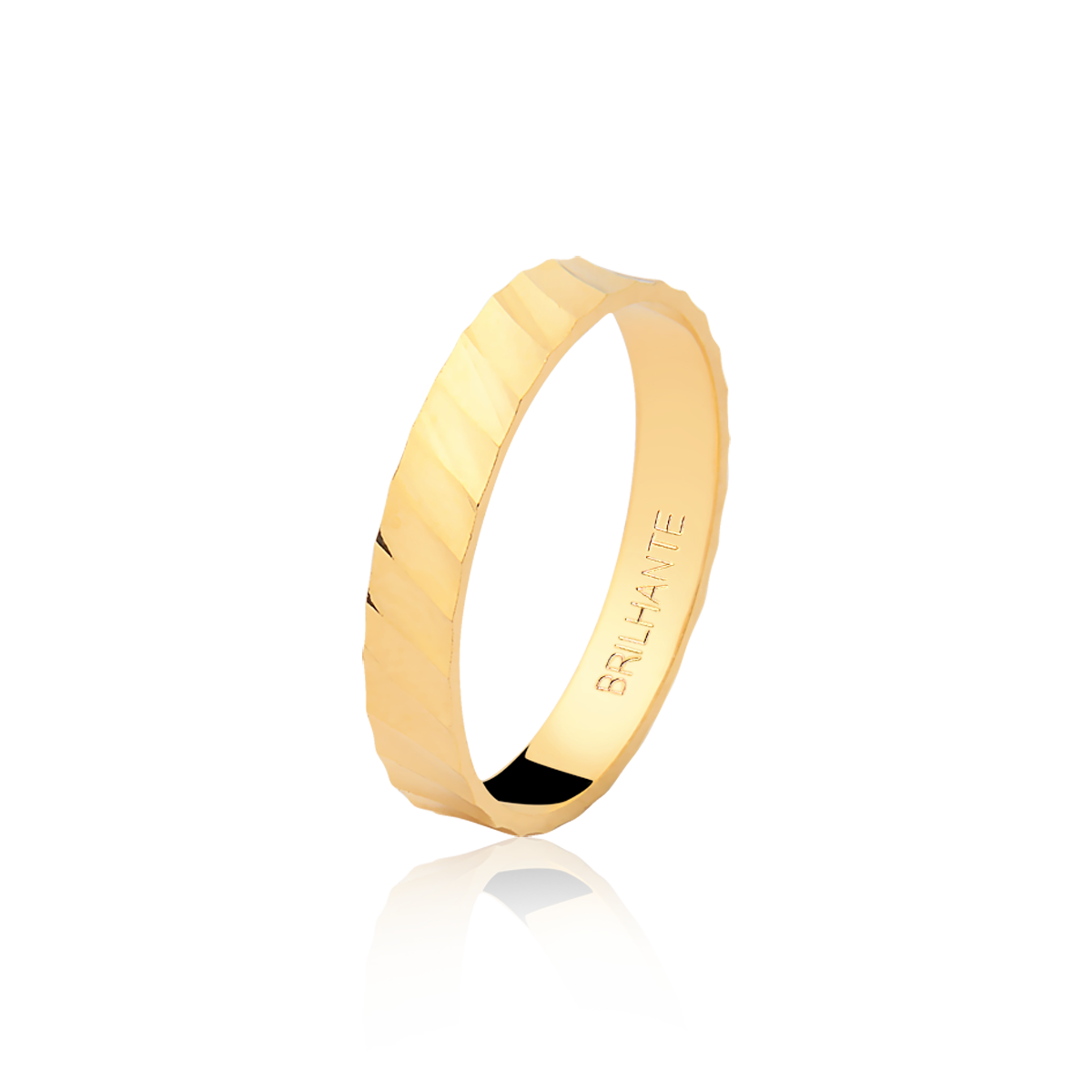 Feita com Ouro de alta pureza, a Aliança brilha intensamente, refletindo a luz de maneira encantadora. Seu acabamento polido garante um brilho duradouro, tornando-a uma peça de destaque em qualquer situação.