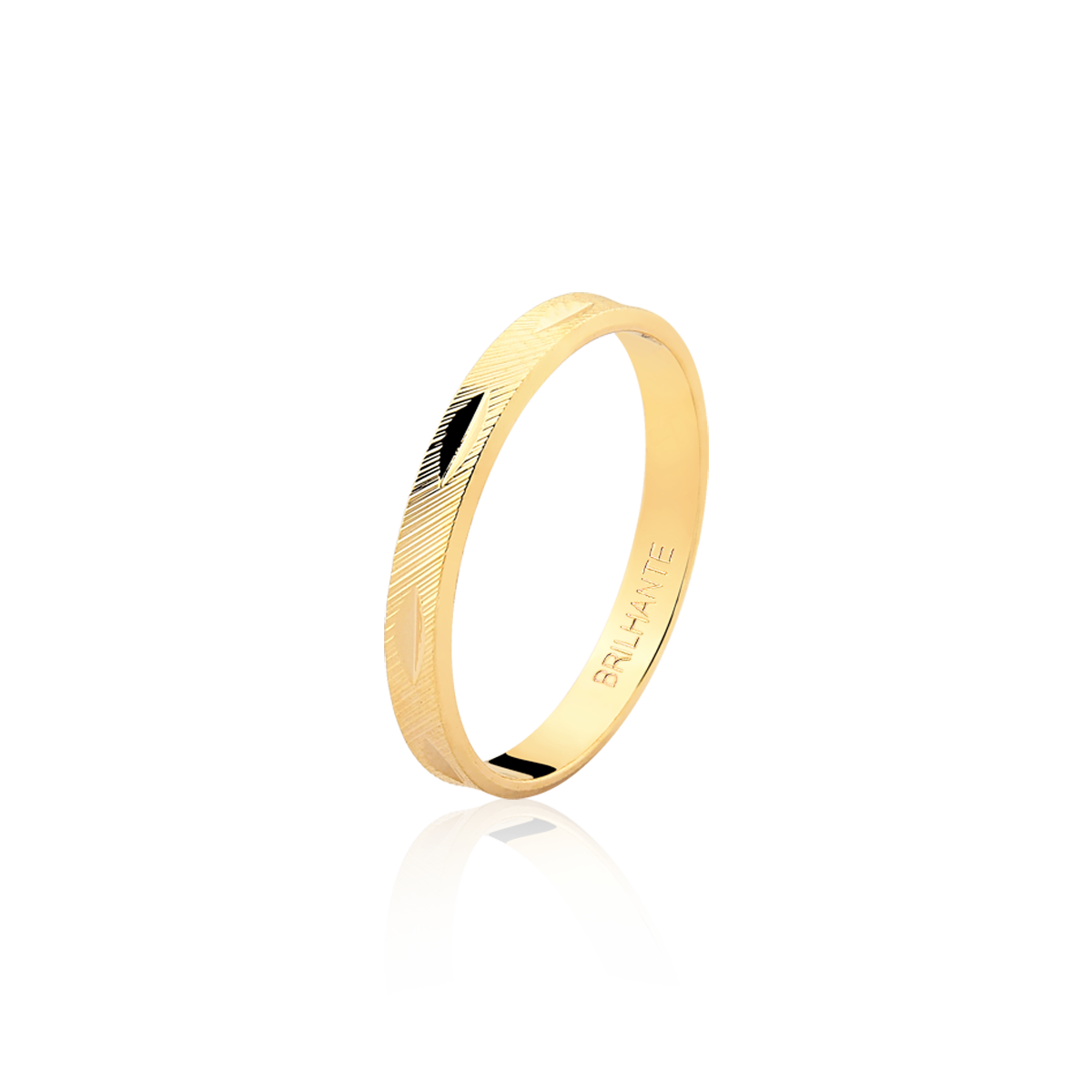 Feita com Ouro de alta pureza, a Aliança brilha intensamente, refletindo a luz de maneira encantadora. Seu acabamento polido garante um brilho duradouro, tornando-a uma peça de destaque em qualquer situação.