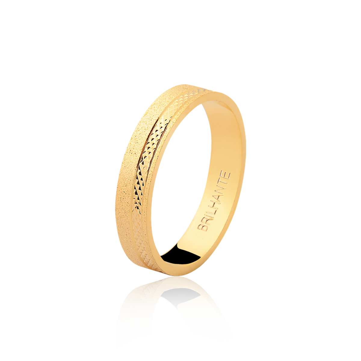 Feita com Ouro de alta pureza, a Aliança brilha intensamente, refletindo a luz de maneira encantadora. Seu acabamento polido garante um brilho duradouro, tornando-a uma peça de destaque em qualquer situação.