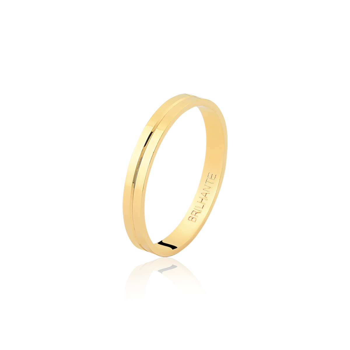 Feita com Ouro de alta pureza, a Aliança brilha intensamente, refletindo a luz de maneira encantadora. Seu acabamento polido garante um brilho duradouro, tornando-a uma peça de destaque em qualquer situação.