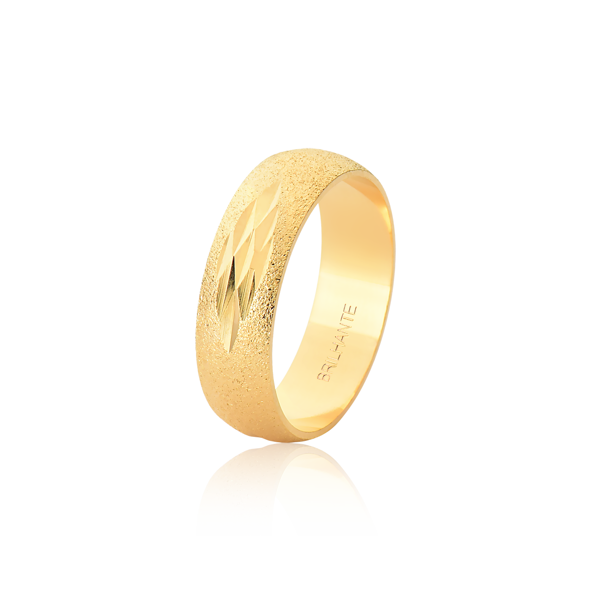 Feita com Ouro de alta pureza, a Aliança brilha intensamente, refletindo a luz de maneira encantadora. Seu acabamento polido garante um brilho duradouro, tornando-a uma peça de destaque em qualquer situação.