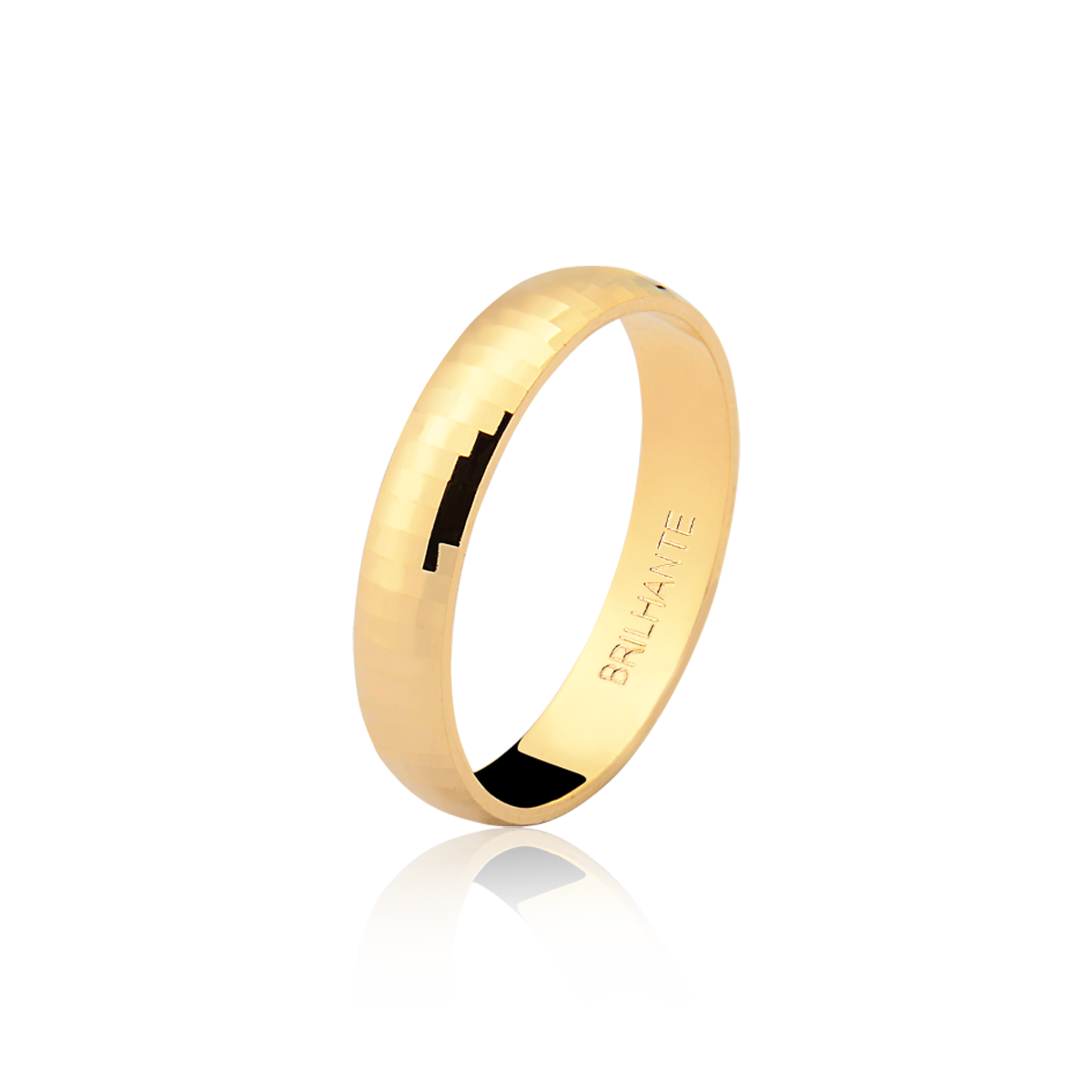 Feita com Ouro de alta pureza, a Aliança brilha intensamente, refletindo a luz de maneira encantadora. Seu acabamento polido garante um brilho duradouro, tornando-a uma peça de destaque em qualquer situação.