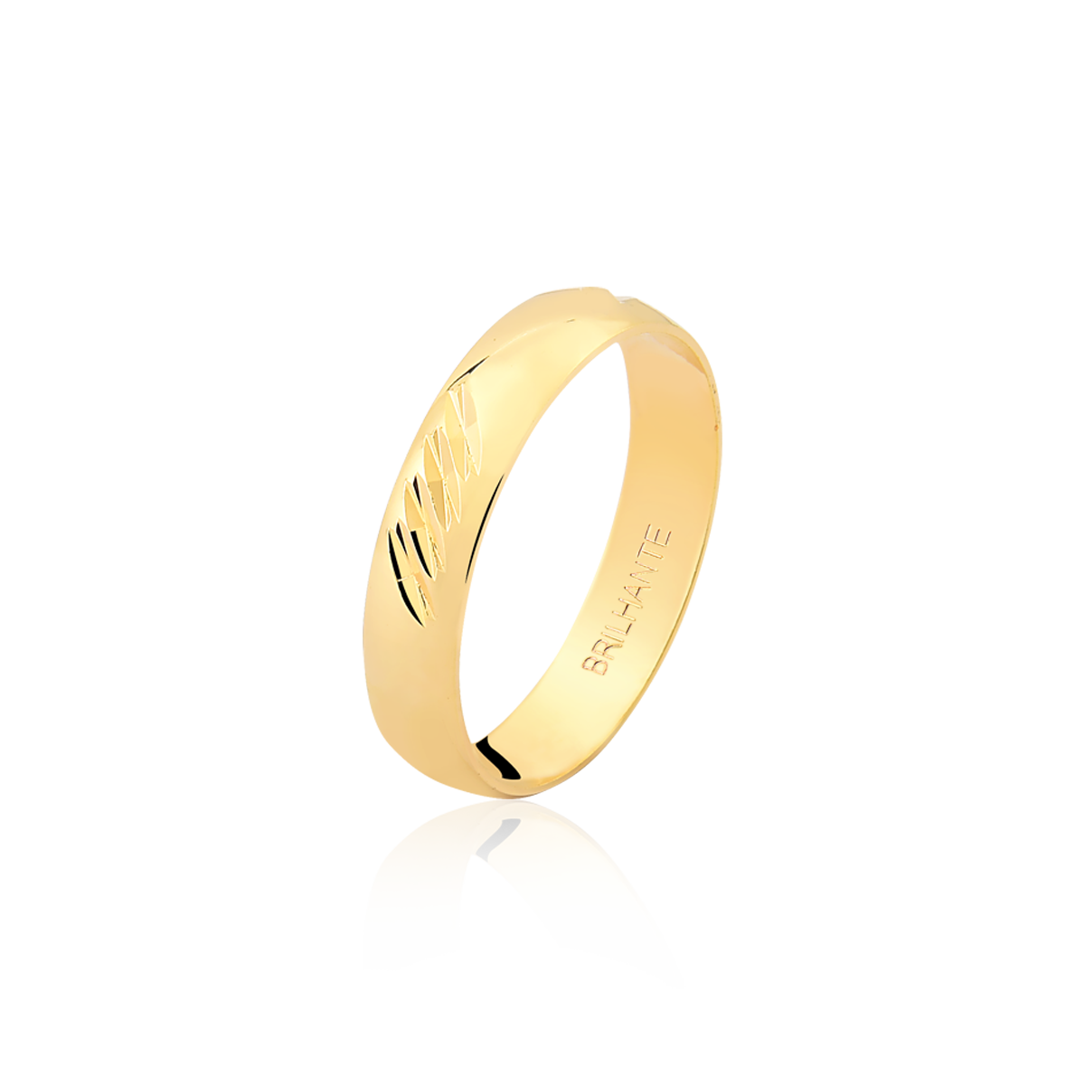 Feita com Ouro de alta pureza, a Aliança brilha intensamente, refletindo a luz de maneira encantadora. Seu acabamento polido garante um brilho duradouro, tornando-a uma peça de destaque em qualquer situação.