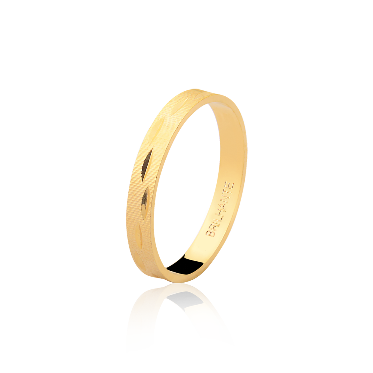 Feita com Ouro de alta pureza, a Aliança brilha intensamente, refletindo a luz de maneira encantadora. Seu acabamento polido garante um brilho duradouro, tornando-a uma peça de destaque em qualquer situação.