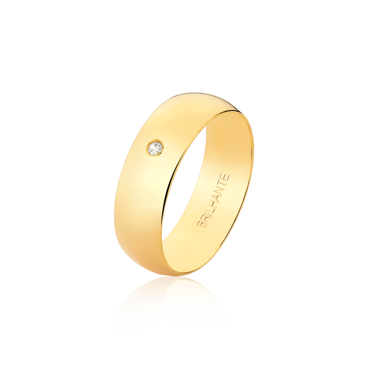 Feita com Ouro de alta pureza, a Aliança brilha intensamente, refletindo a luz de maneira encantadora. Seu acabamento polido garante um brilho duradouro, tornando-a uma peça de destaque em qualquer situação.