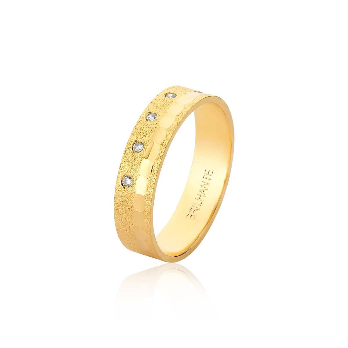 Feita com Ouro de alta pureza, a Aliança brilha intensamente, refletindo a luz de maneira encantadora. Seu acabamento polido garante um brilho duradouro, tornando-a uma peça de destaque em qualquer situação.