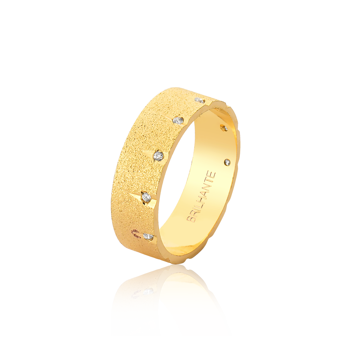 Feita com Ouro de alta pureza, a Aliança brilha intensamente, refletindo a luz de maneira encantadora. Seu acabamento polido garante um brilho duradouro, tornando-a uma peça de destaque em qualquer situação.